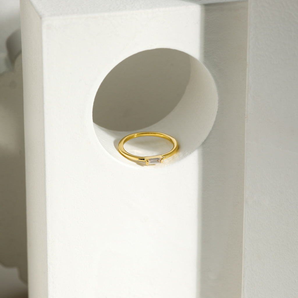 Faye | Horizontal Baguette Ring Sapphire | Minimalist Handmade